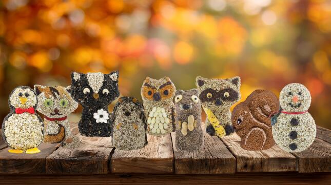 Honestly, could they be more adorable? Available exclusively at Wild Birds Unlimited, we offer several fun Seed Cylinder characters, including Hoot the Owl, Rascal the Raccoon, Preston the Penguin and Buttons the Snowman. Each is a mix of seeds, nuts and fruit and a wonderful addition to any yard.